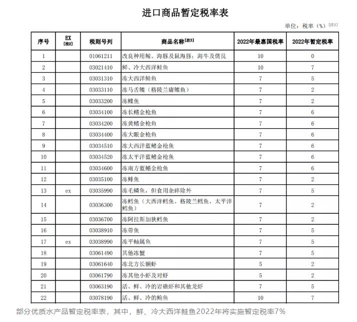 原文標題:【利好政策】2022年將調整部分商品關稅,多種大宗優質進口水產品降稅!