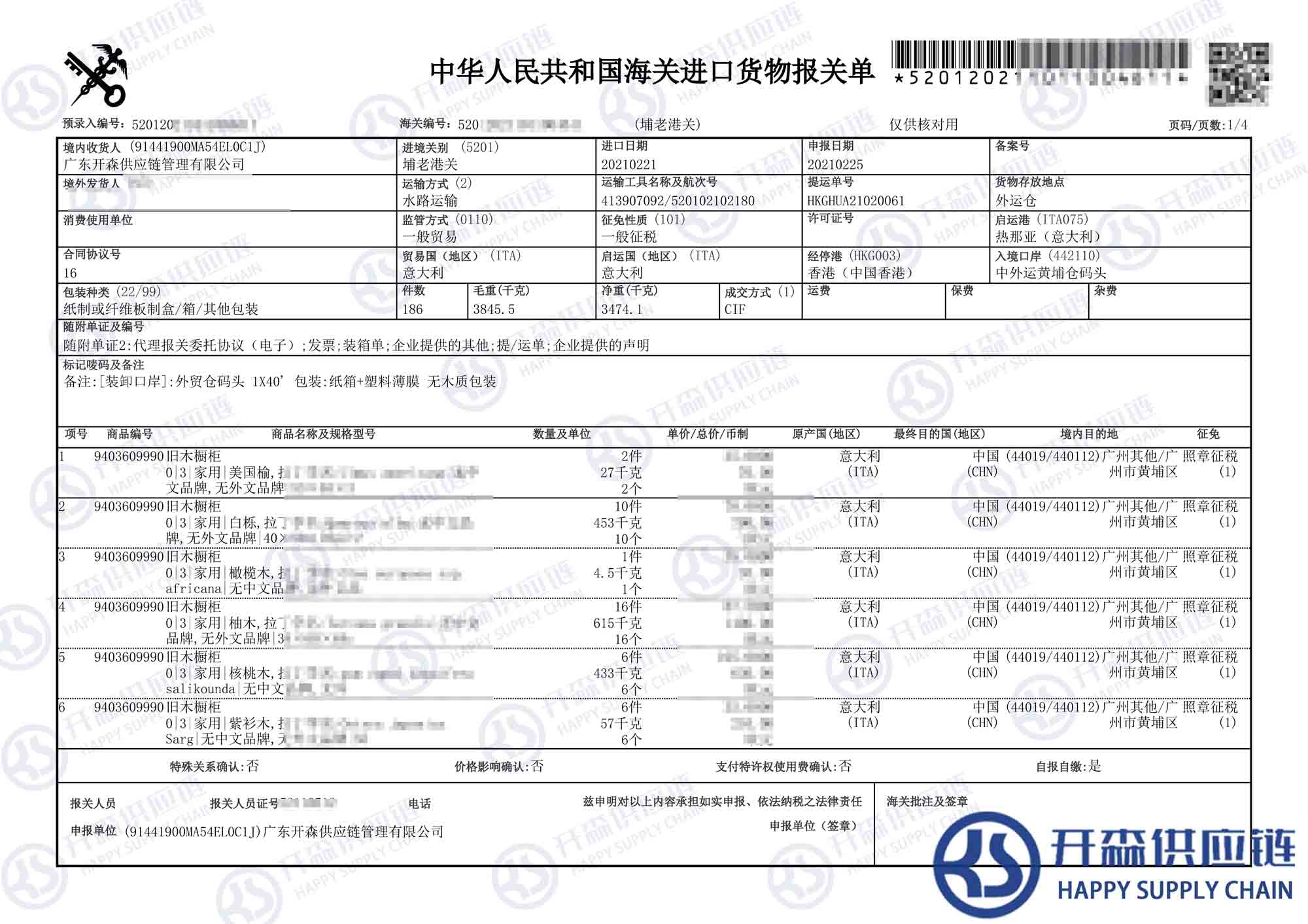 原文標題:意大利舊木櫥柜家具進口報關代理案例【進口案例】