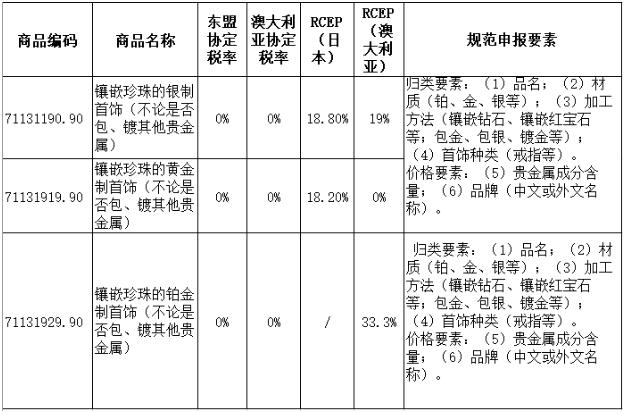 珍珠可以鑲嵌在貴金屬上,制成精美的首飾。鑲嵌珍珠的貴金屬首飾,應歸入7113項下。以下是珍珠首飾可能涉及的歸類、規范申報要素及進口關稅稅率,填報時請特別注意: