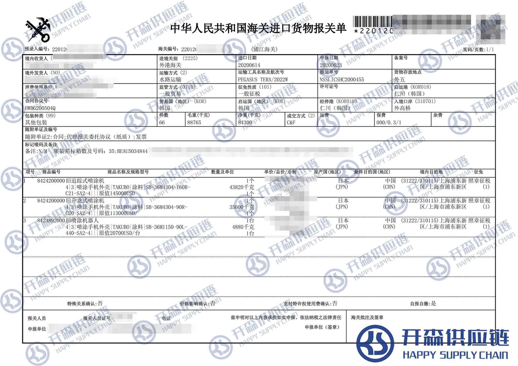 【導讀】您正在閱讀的是關于上海港韓國舊追蹤式噴涂機進口報關代理【進口案例】的內容,本文由開森二手機械進口報關代理小編整理編寫;